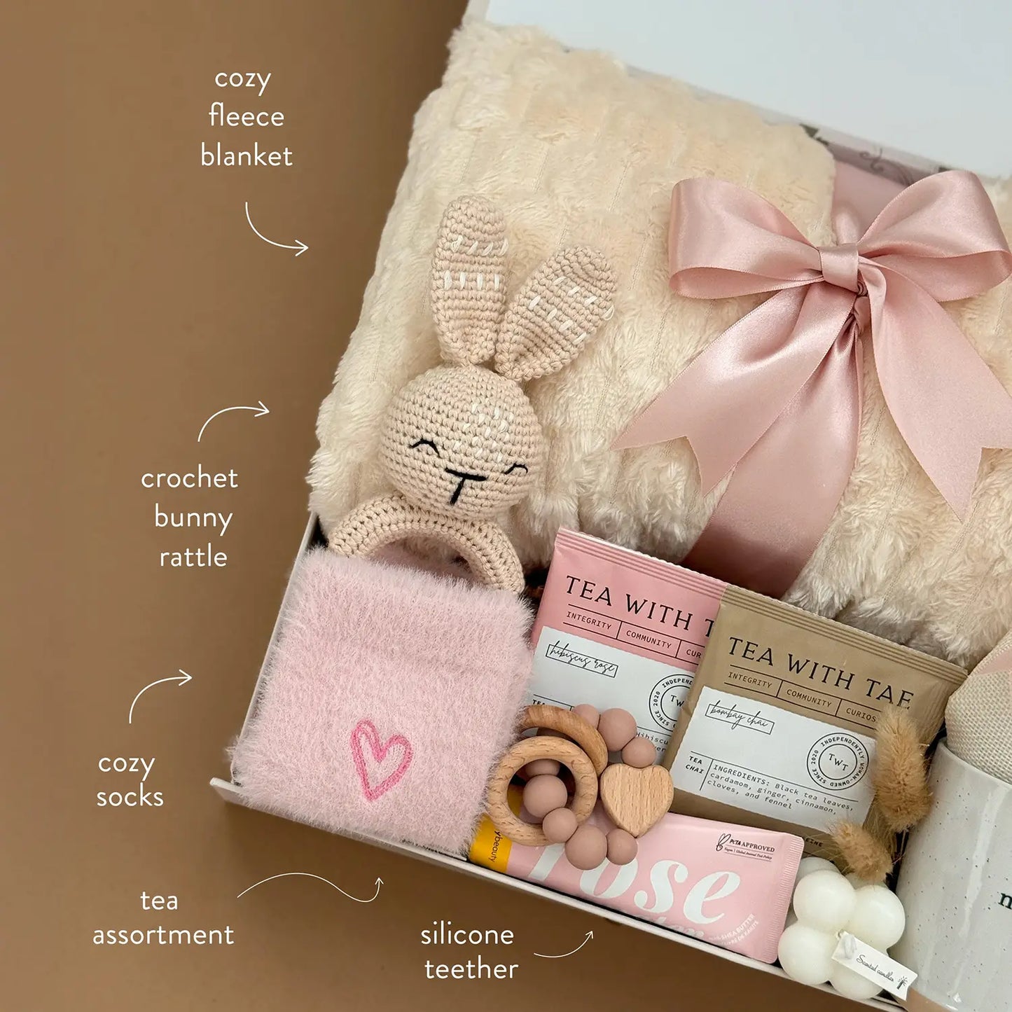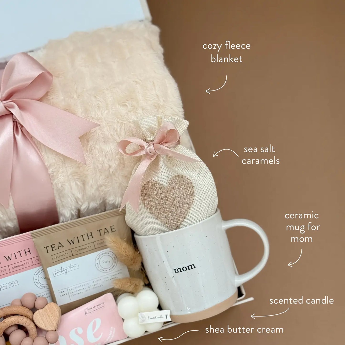 Celebrate motherhood with a warm, comforting box full of self-care and baby essentials. Cozy gift set with tea, sweets, and soft textures—made to help new moms relax and feel appreciated.