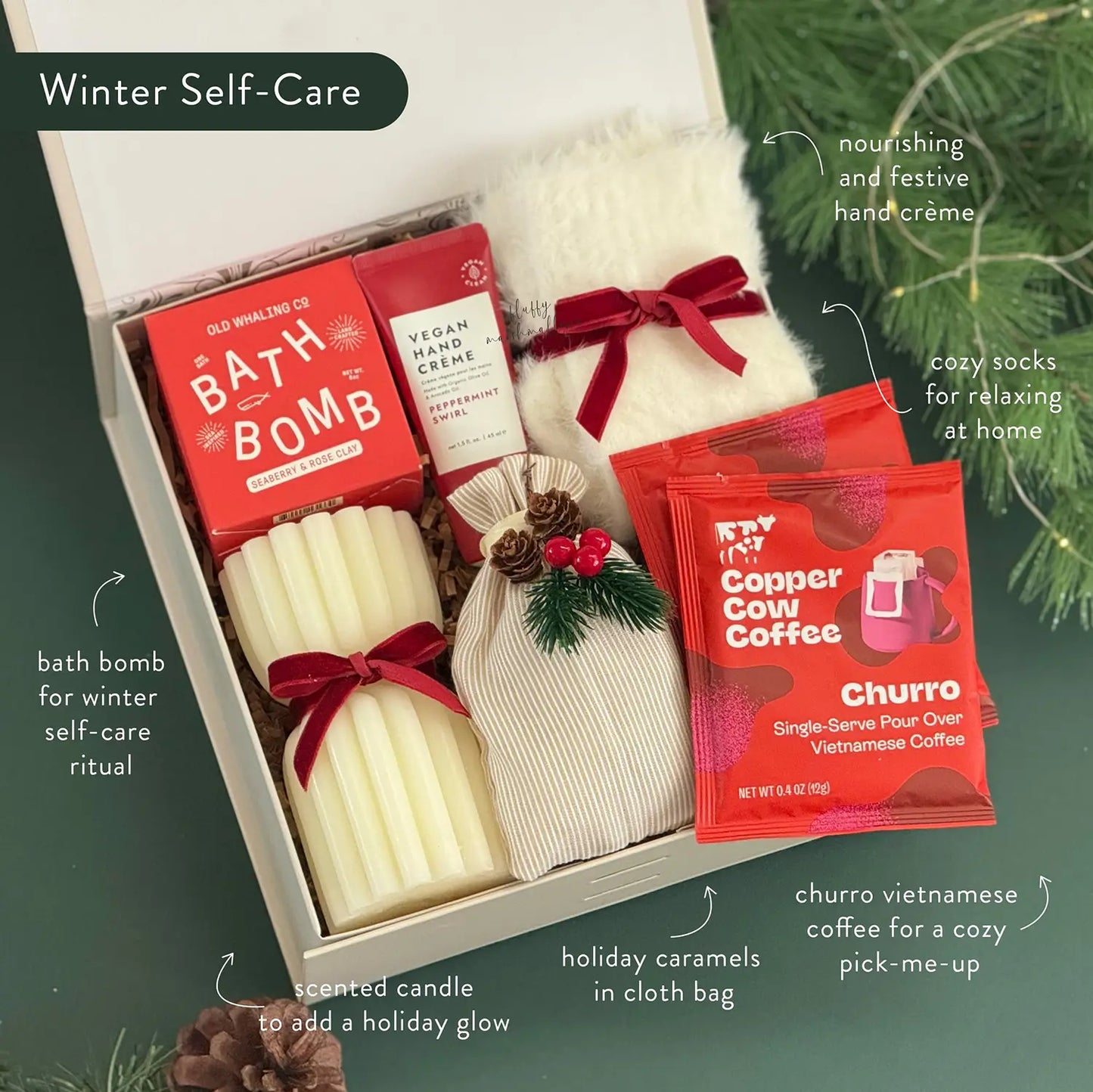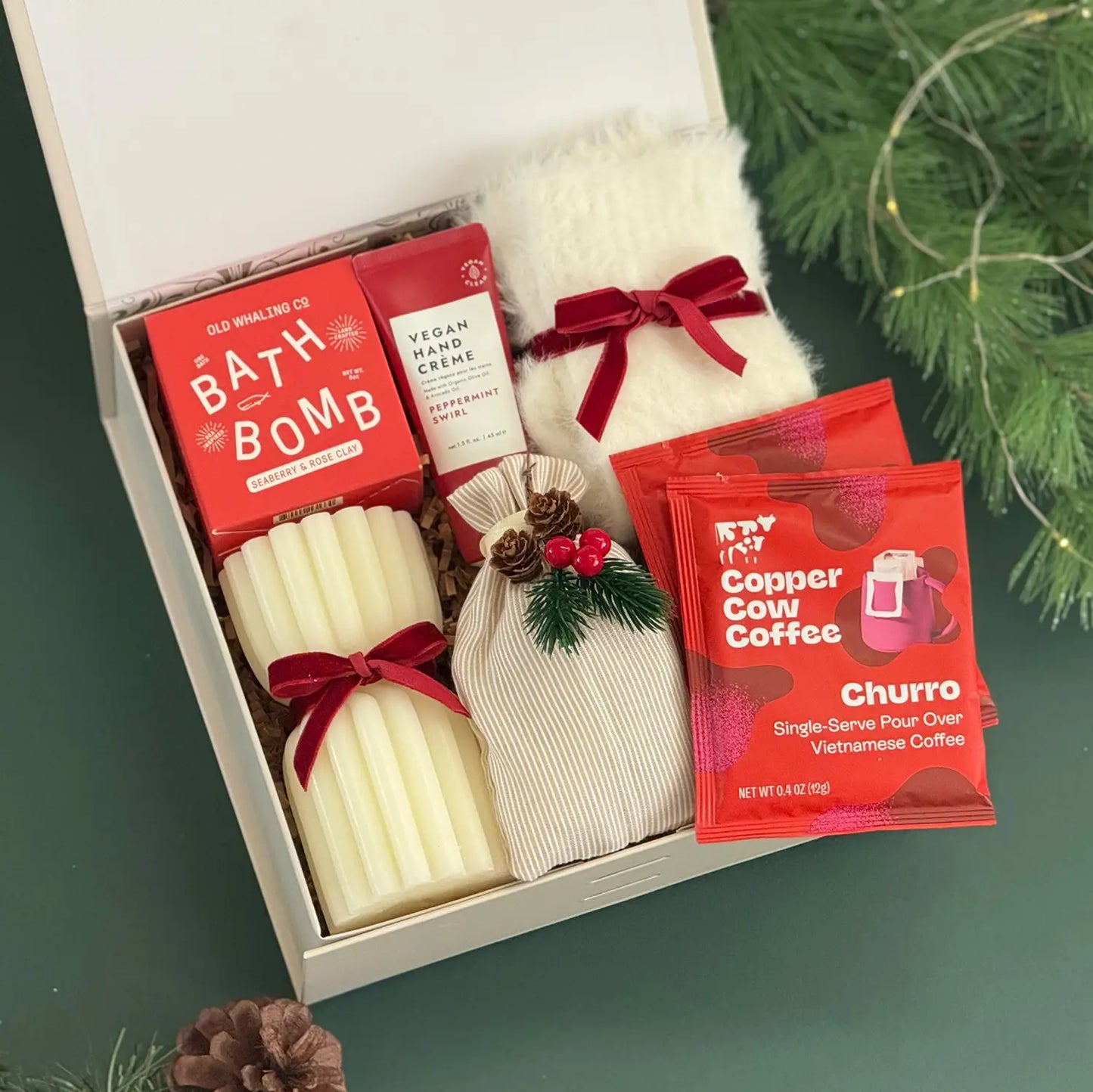 Celebrate Christmas & New Year with cozy gift baskets and holiday care packages. Thoughtful festive gifts to spread joy and comfort.