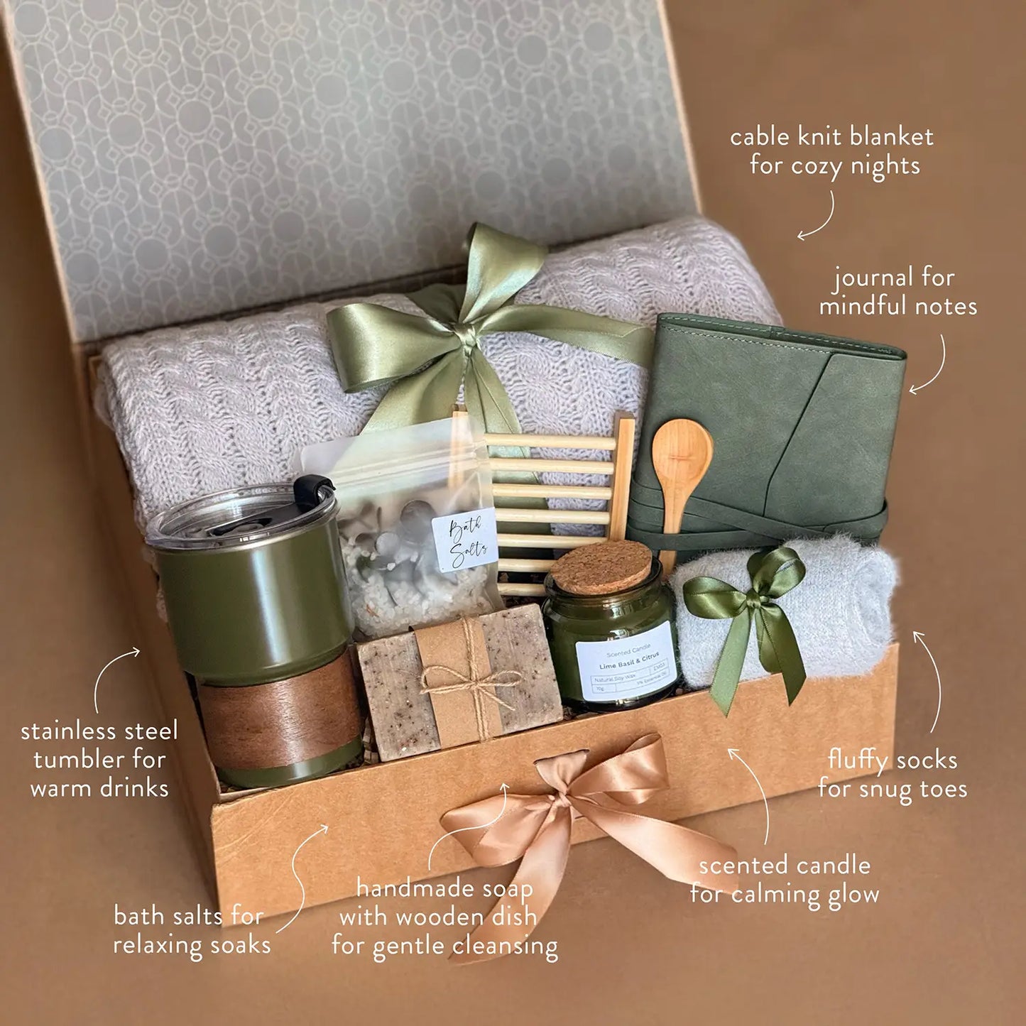 Leafy Lane Fall Gift Basket | Blanket, Tumbler & Spa-Inspired Comforts