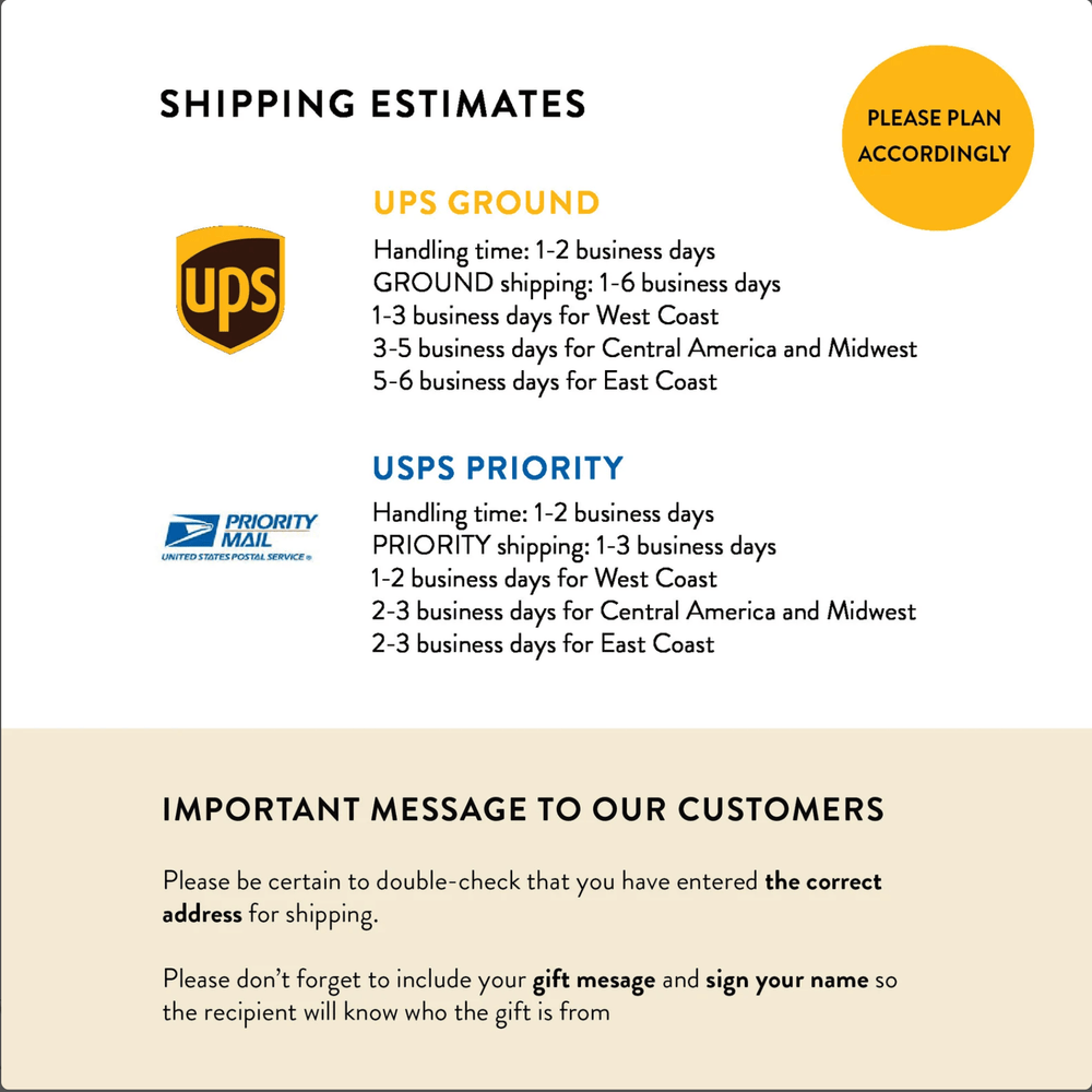 PLEASE NOTE: All our gift baskets are packed by hand. Order processing time is 1-2 business days.