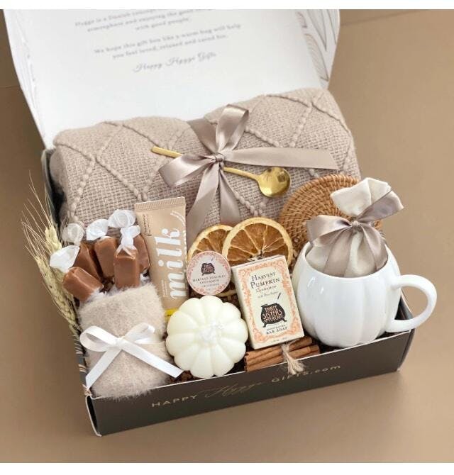 Wrap yourself in warmth and comfort with our Fall Care Package! This thoughtfully curated set includes a super soft knit blanket, a charming fall-themed mug, a relaxing pumpkin spice latte candle, and hand crafted spa items. Perfect for indulging in cozy autumn moments or gifting to someone special. Whether it’s for a birthday, holiday, or just because, this gift box will bring all the cozy fall vibes right to your door.
