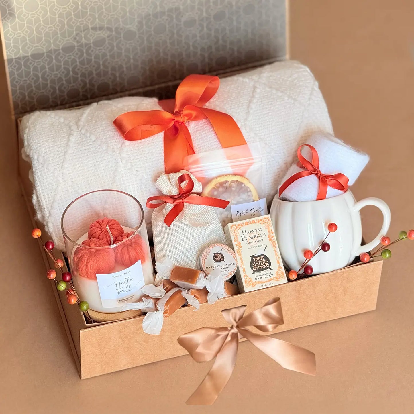 Explore our curated collection of fall gift baskets, featuring cozy blankets, scented candles, and more. Perfect for autumn birthdays, housewarmings, and seasonal celebrations