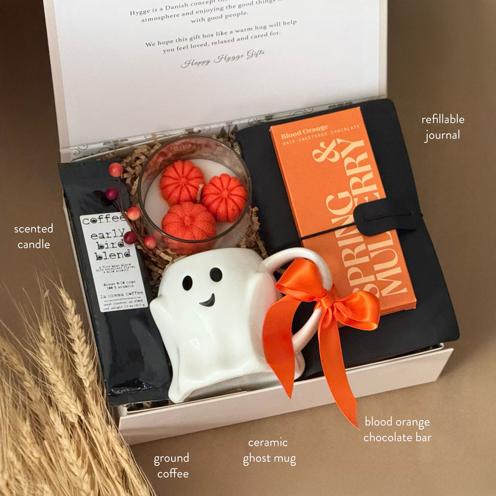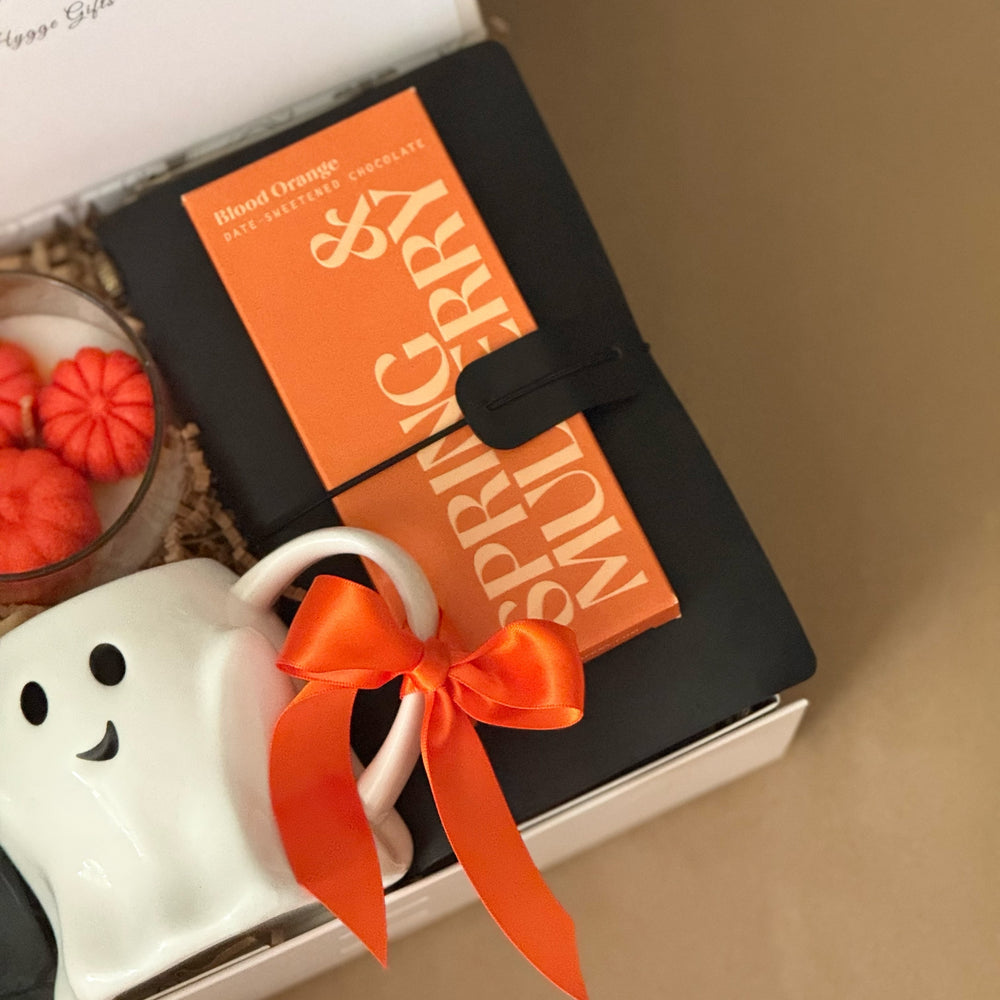Celebrate the cozy side of spooky season with the Midnight Harvest Halloween Gift Box, where comfort meets mystery. Each detail—from the rich aroma of freshly brewed coffee to the flicker of a pumpkin candle—creates a perfect balance of warmth and Halloween magic.