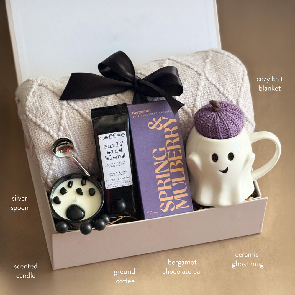 Wrapped in cozy textures and elevated with artisanal touches, this gift is perfect for celebrating autumn nights, hosting seasonal gatherings, or sending a thoughtful surprise. Whether you’re treating yourself or gifting someone special, the Haunted Harvest box delivers the perfect blend of cozy hygge and hauntingly beautiful charm.