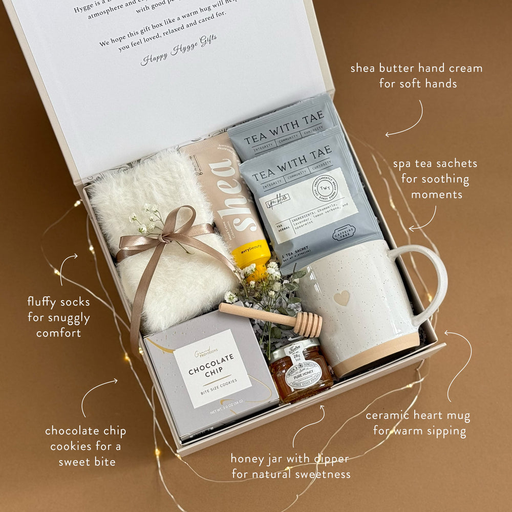 Bring a sense of calm and sweetness to someone’s day with our Sky & Clouds Hygge Gift Box. Thoughtfully curated to inspire soft moments of comfort, this set blends soothing textures, warm sips, and little indulgences—perfect for slowing down and savoring life’s simple pleasures.