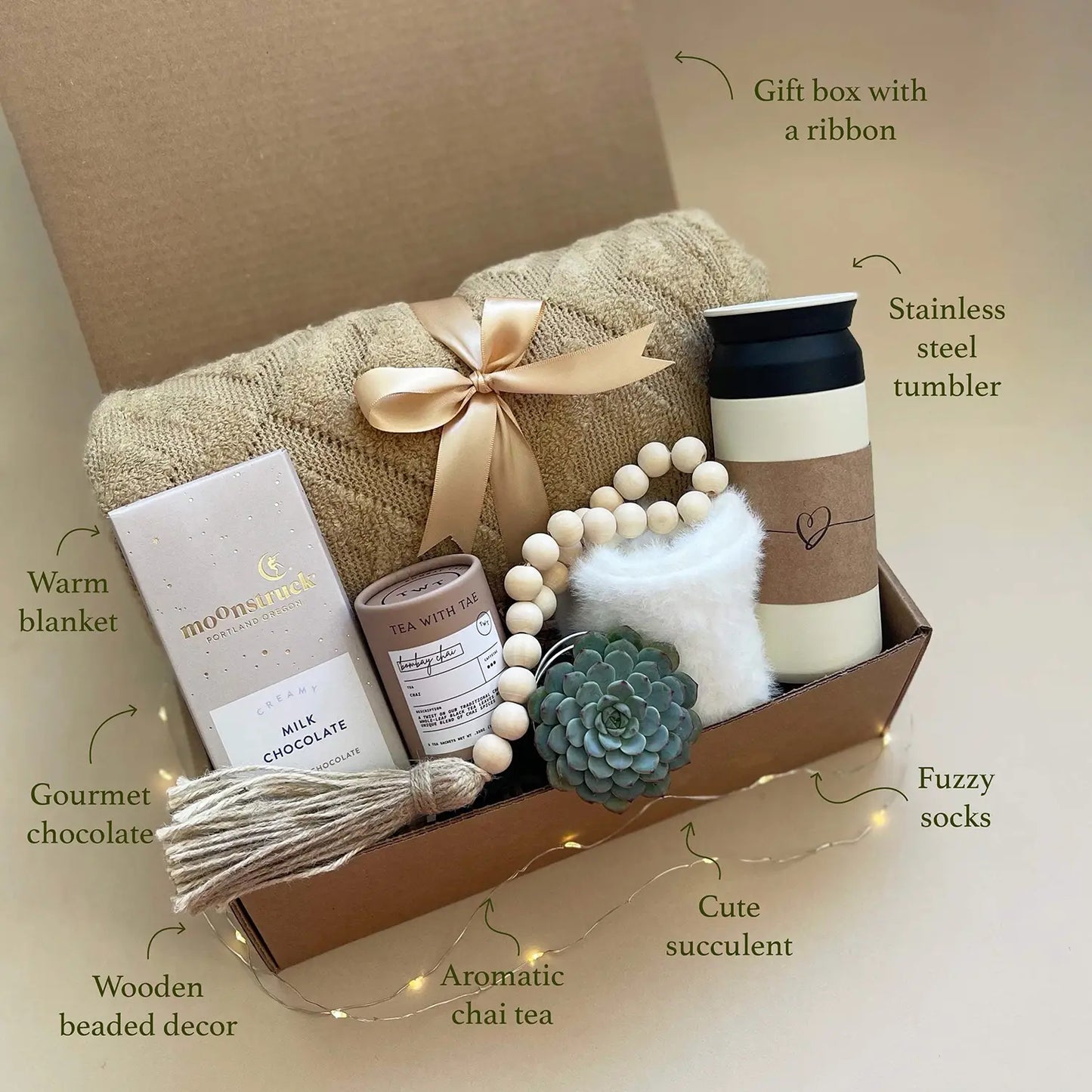 Extra Special Gift Box for Women | Cozy Gift Basket with Blanket, Socks, Succulent | Get Well Gift, Thinking Of You Care Package for Her