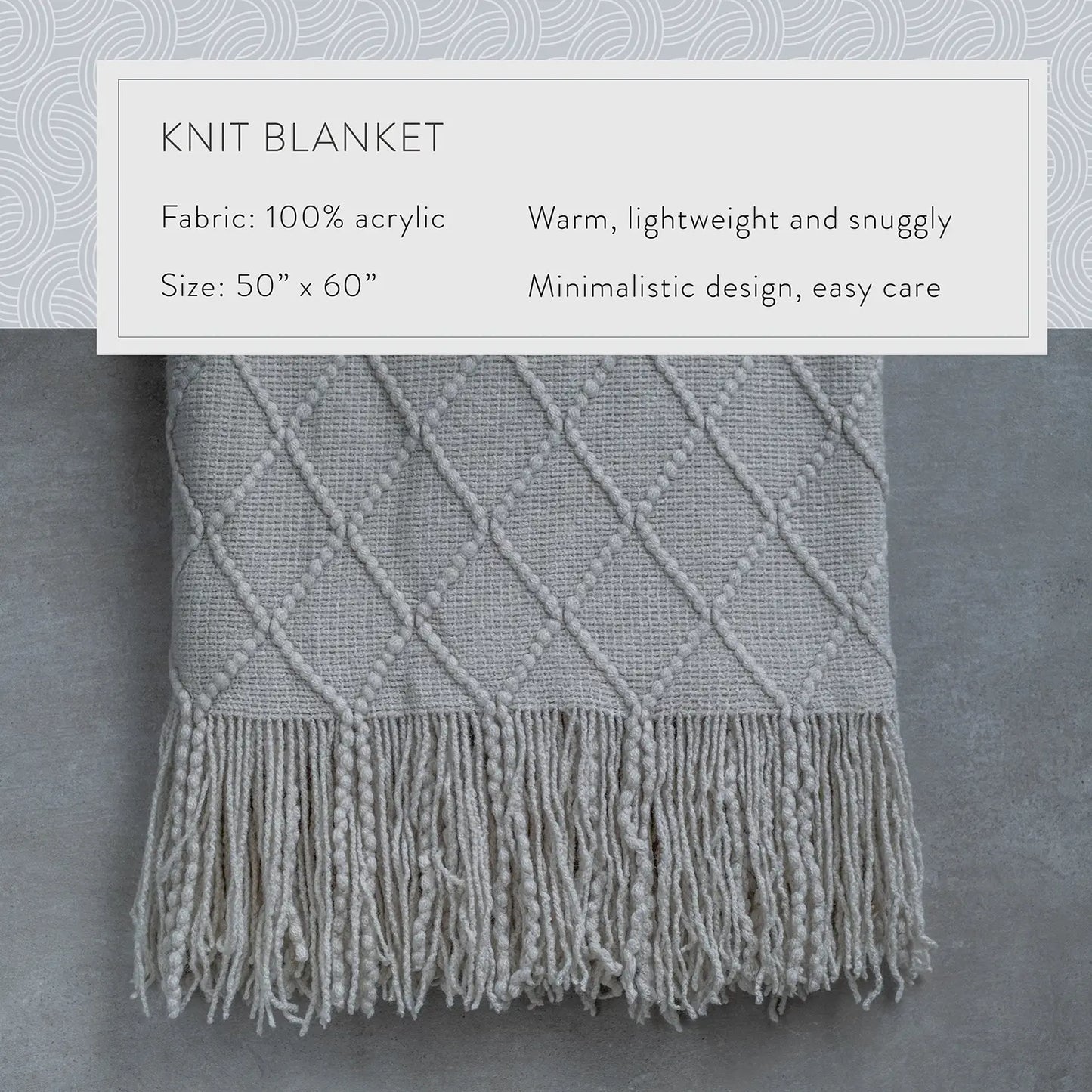 ✭ Knit throw blanket 50"x60", 100% acrylic. Various colors are available: grey, navy, off-white, dark grey